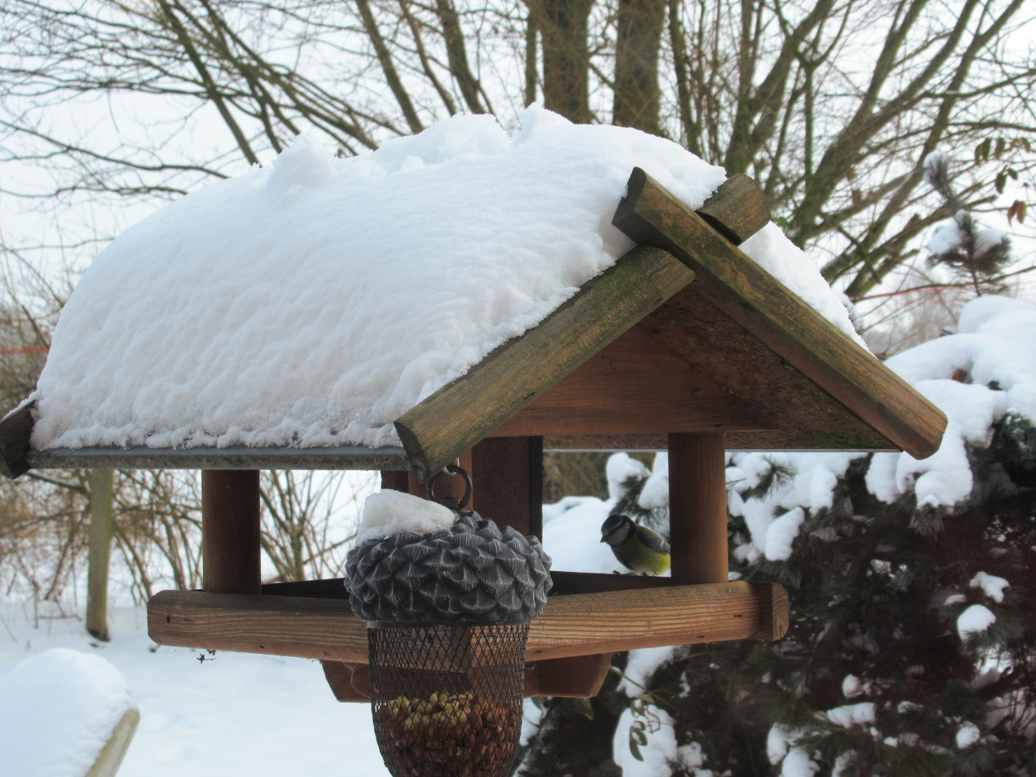 #birds #BirdsOfFediverse #Meise #Schnee Das ist schon ein stattliches Schneehäubchen, und der Piepmatz wirkt noch winziger darunter.