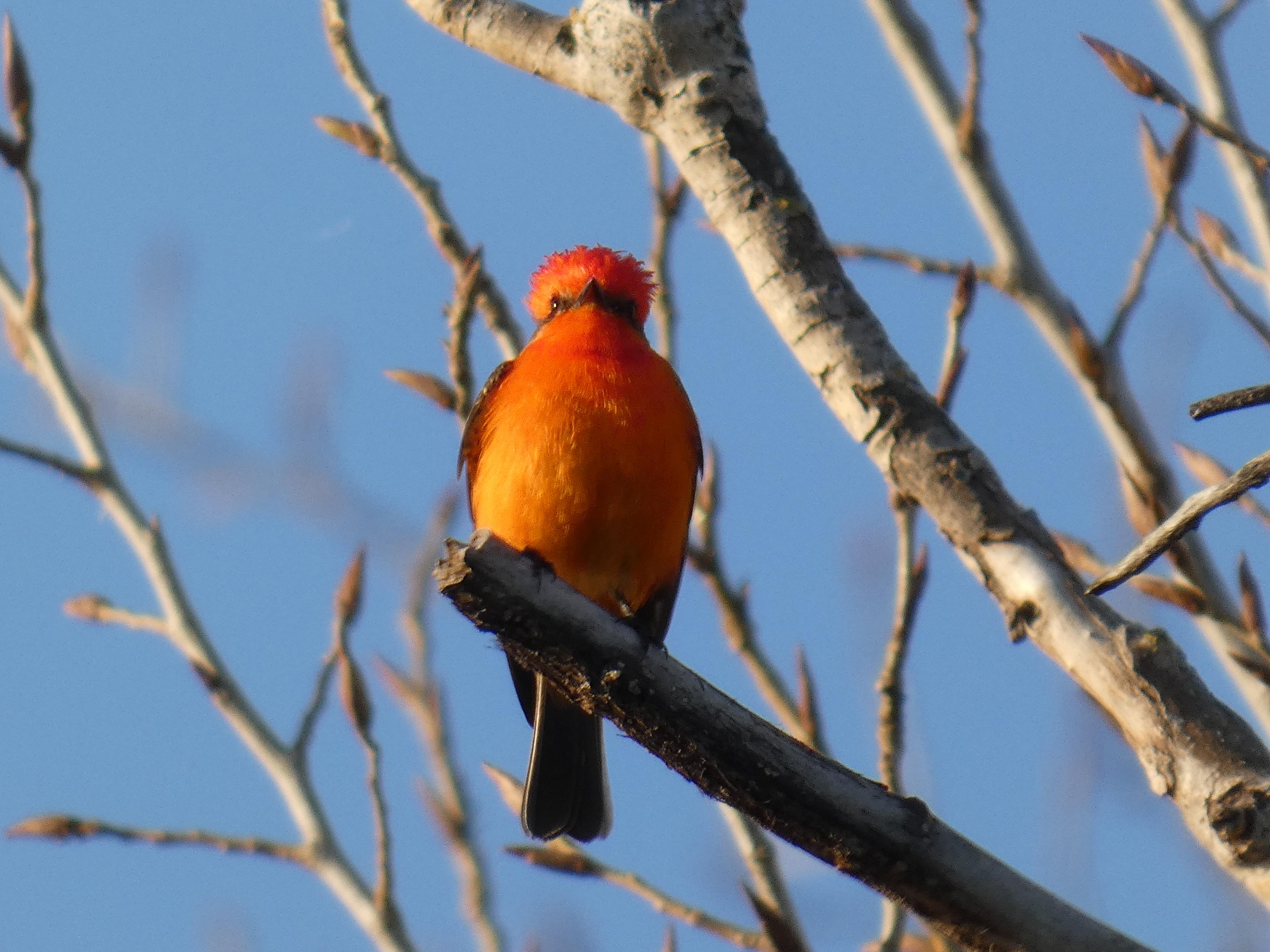 My favorite shot from a day at the Merced National Wildlife Refuge. It's a Vermilion Flycatcher, very rare in these parts, but this one has returned to the same set of trees for three or four years now. #birdwatching