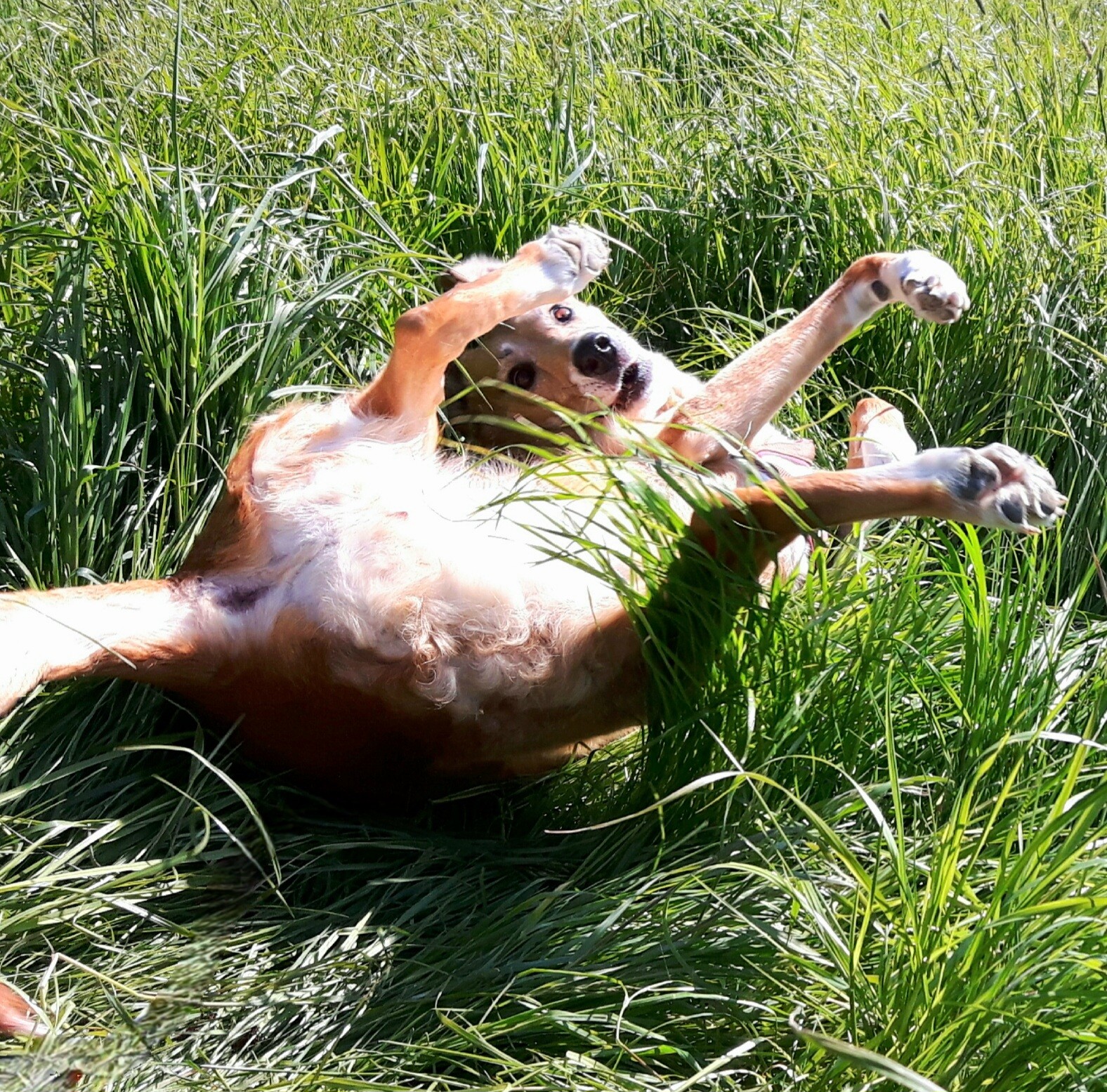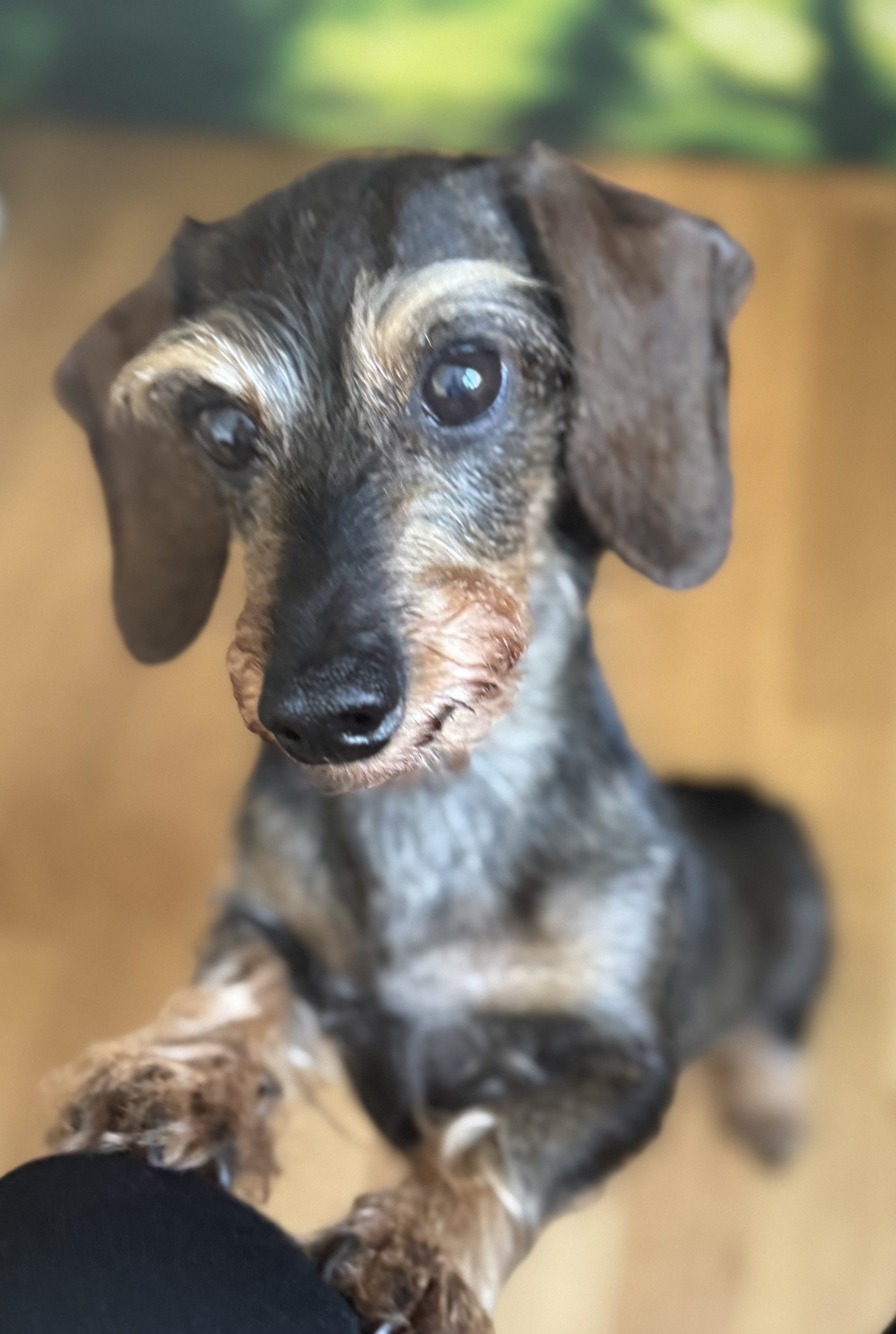 We are enjoying this morning moment. We are all feeling perky and happy to be together. We decided to save the worries for tomorrow. Not that there isn't plenty to worry about but a rest is in order. I even took off my Fitbit in favor of a free day. Warm apple turnovers for breakfast with rich dark coffee. We reminded each other of challenging times past and our good fortune in surviving and beating all the odds. We are so lucky and we are thankful. Summer says she loves all of us too. Good morning, Mastodon.#Summer #DogsOfMastodon