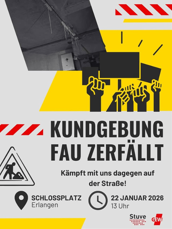 [MORGEN] 🪙Kundgebung FAU zerfälltDonnerstag, 22. Januar 2026, beginnt um 13:00Schloßplatz, 91054 Erlangenhttps://myqueerevents.de/events/02876544-11a8-4d75-b914-63e2ff861d65Freistaat gönnt kein Geld: FAU zerfällthttps://www.instagram.com/p/DThxSuFiBt3/#fau #erlangen #demo #fauzerfällt #kundgebung #bayern #staatsregierung #protest #stuve