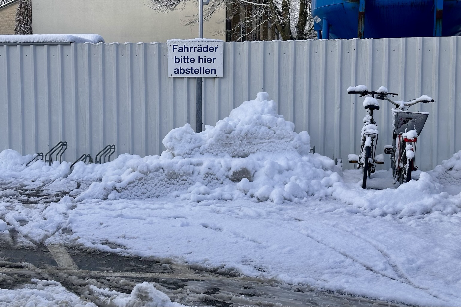 Winter Symbolbild für die Fahrradstadt Hamburg - auch Aldi Nord heißt die radfahrenden Bürger herzlich willkommen. #FahrradAlltag #Hamburg
