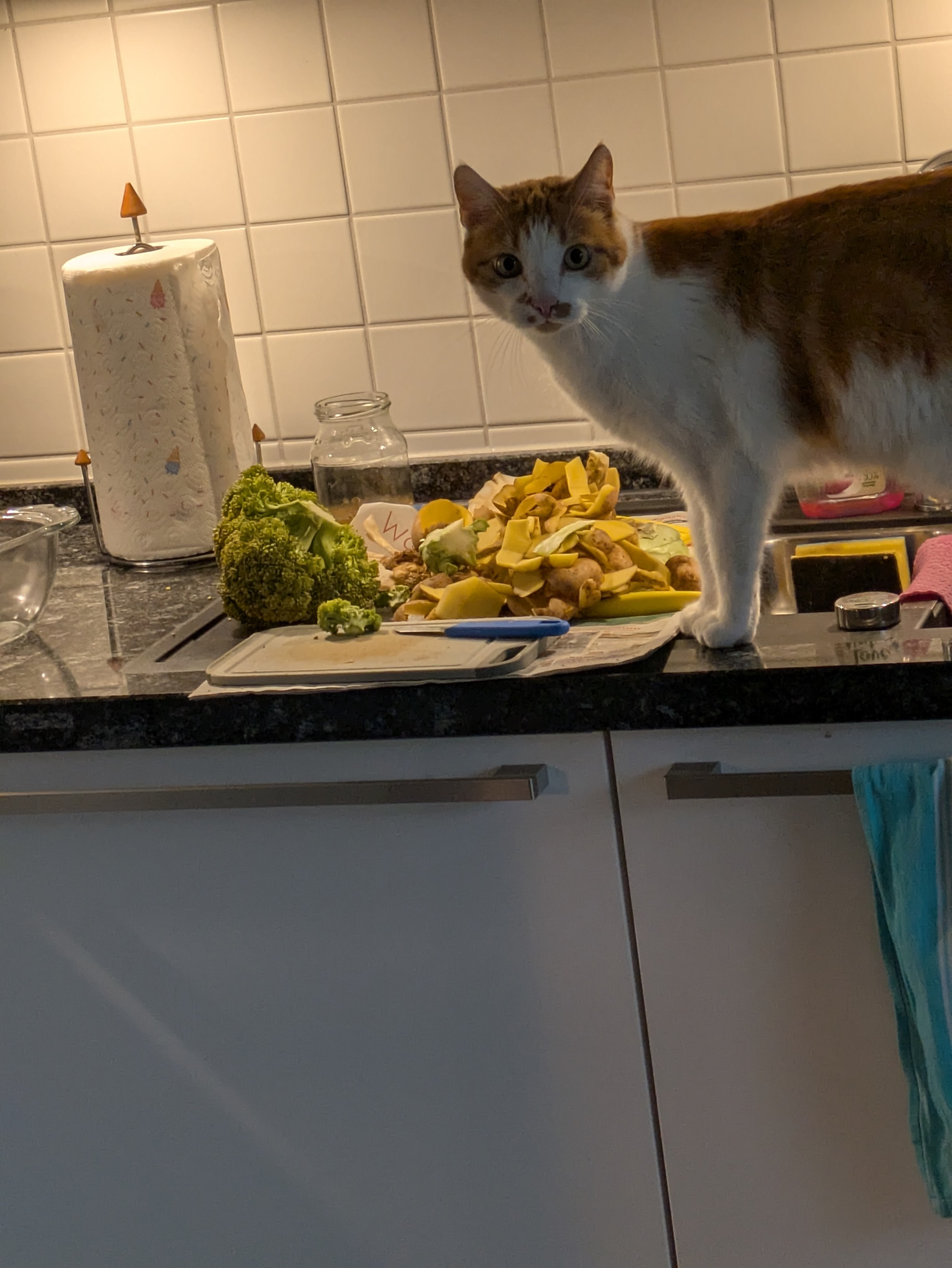 #FotoVorschlag “In meiner Küche” / In my kitchen We used to move our living room flowers to the kitchen counter at night, to prevent Max from getting to them while we were asleep. But Max was always too smart for us.#MonochromeMonday #monochrome #blackandwhite #photography #cats #catsofmastodon #flowers