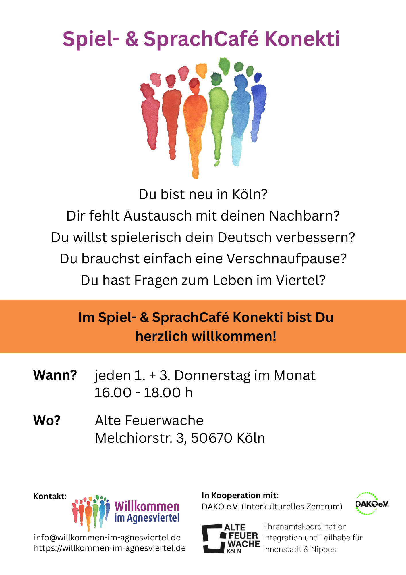 Los geht's: Am 5. März starten wir das Spiel- und Sprachcafé Konekti, bei dem Geflüchtete und andere neue Nachbarn Kontakte knüpfen, spielerisch ihr Deutsch einüben oder einfach bei Kaffee oder Tee, Kuchen, Keksen oder Knabberkram entspannen können. Kinder können mitgebracht werden.Wenn ihr Leute im Agnesviertel, am Eigenstein oder in Nippes kennt, denen das guttun würde und die darauf Lust haben könnten, gebt ihnen den Flyer gerne weiter! #Köln @koelngruppe #Geflüchtete