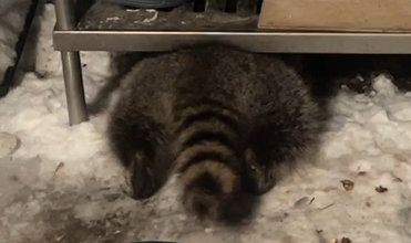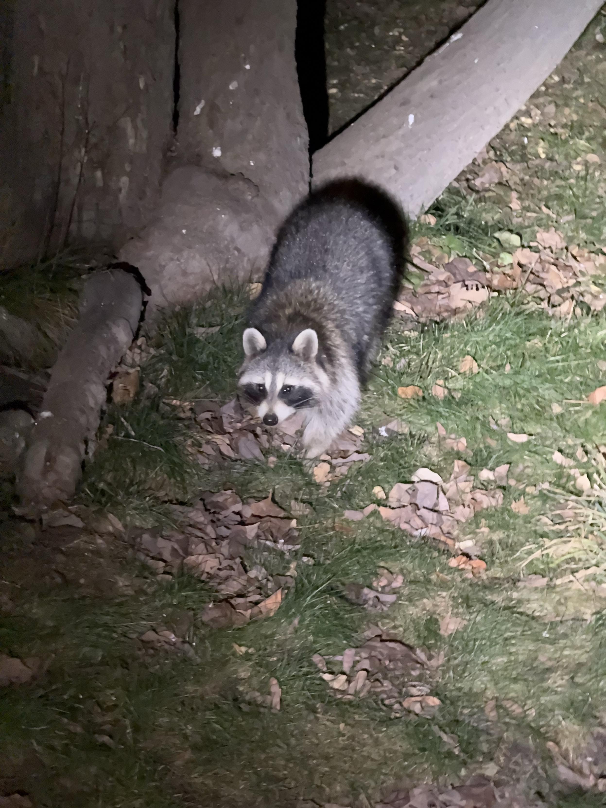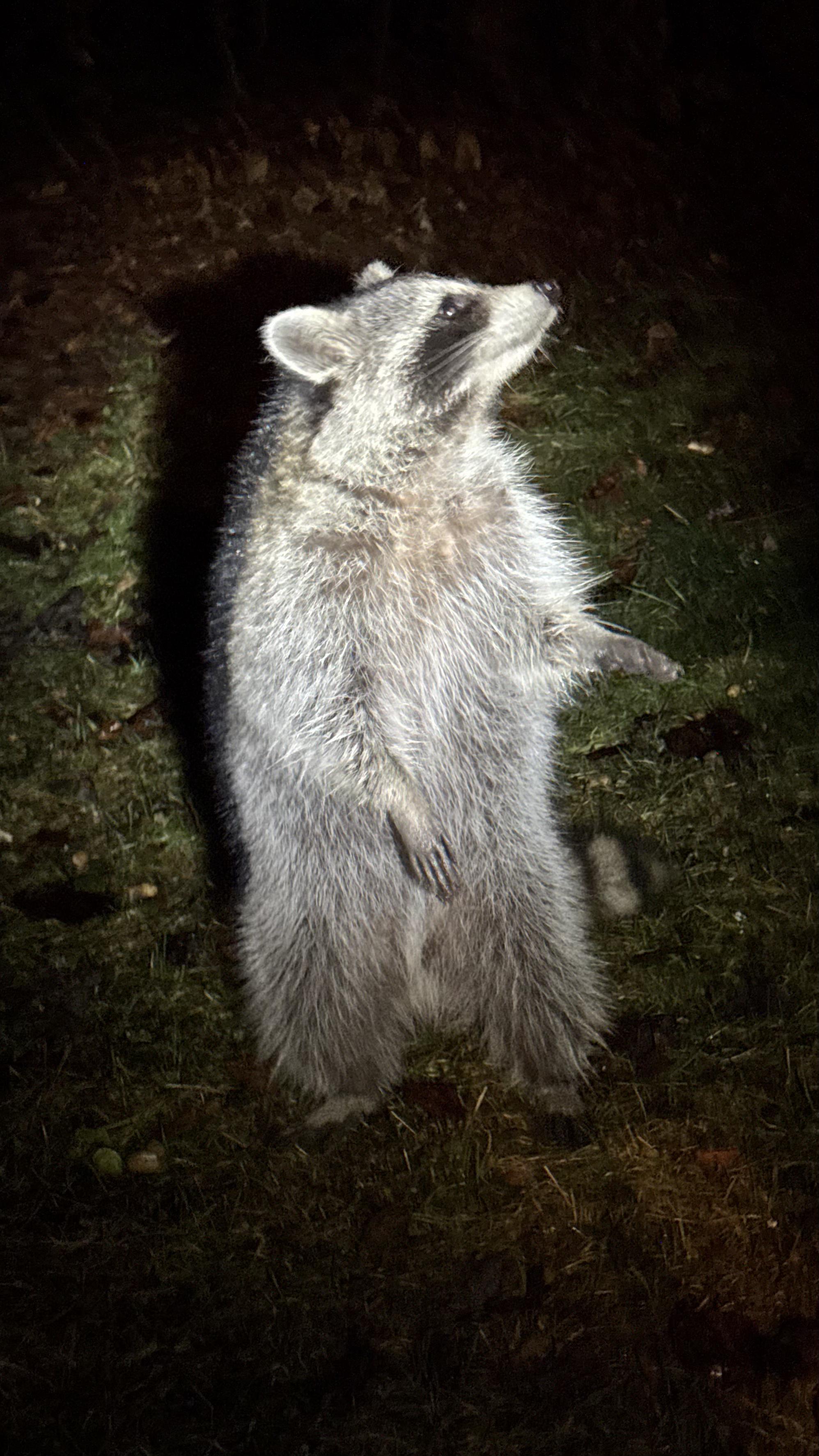 One of the raccoons is regretting its recent choice to ignore the bowl of chicken I had out for Euler's late night snack.