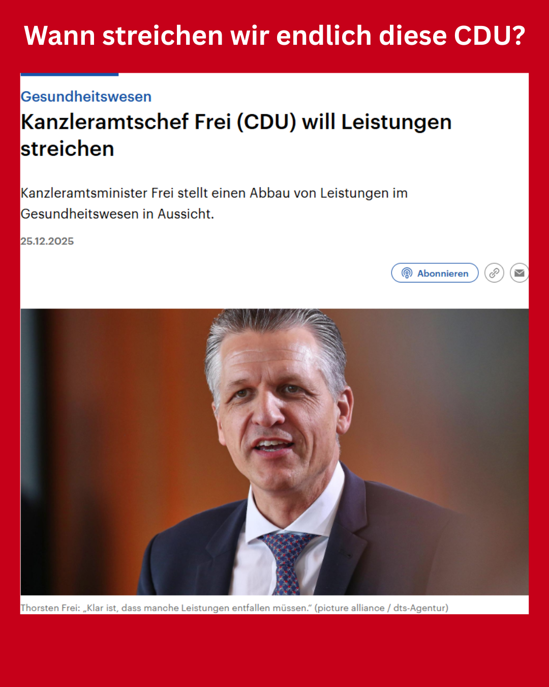 Wenn Politiker*innen wie Thorsten Frei vom „Sparen im Gesundheitssystem“ sprechen, meinen sie nie Vermögen, Profite oder strukturelle Ungleichheit.
