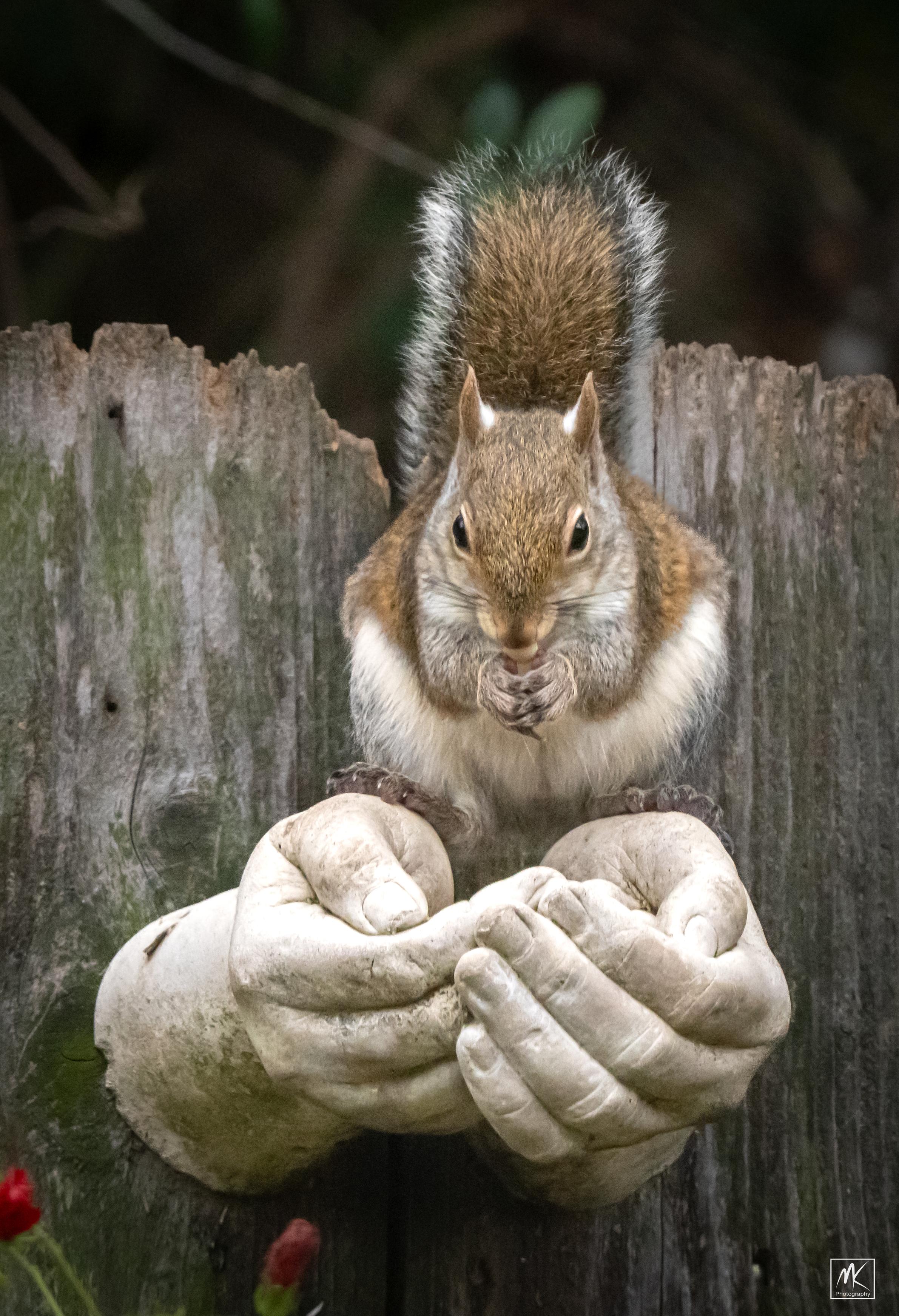 Das ist übrigens die „nicht mal EINE Nuss kann man hier in Ruhe genießen ohne dass die da unten wieder was anstellen“-Haltung unserer 🐿️Männer hier.
