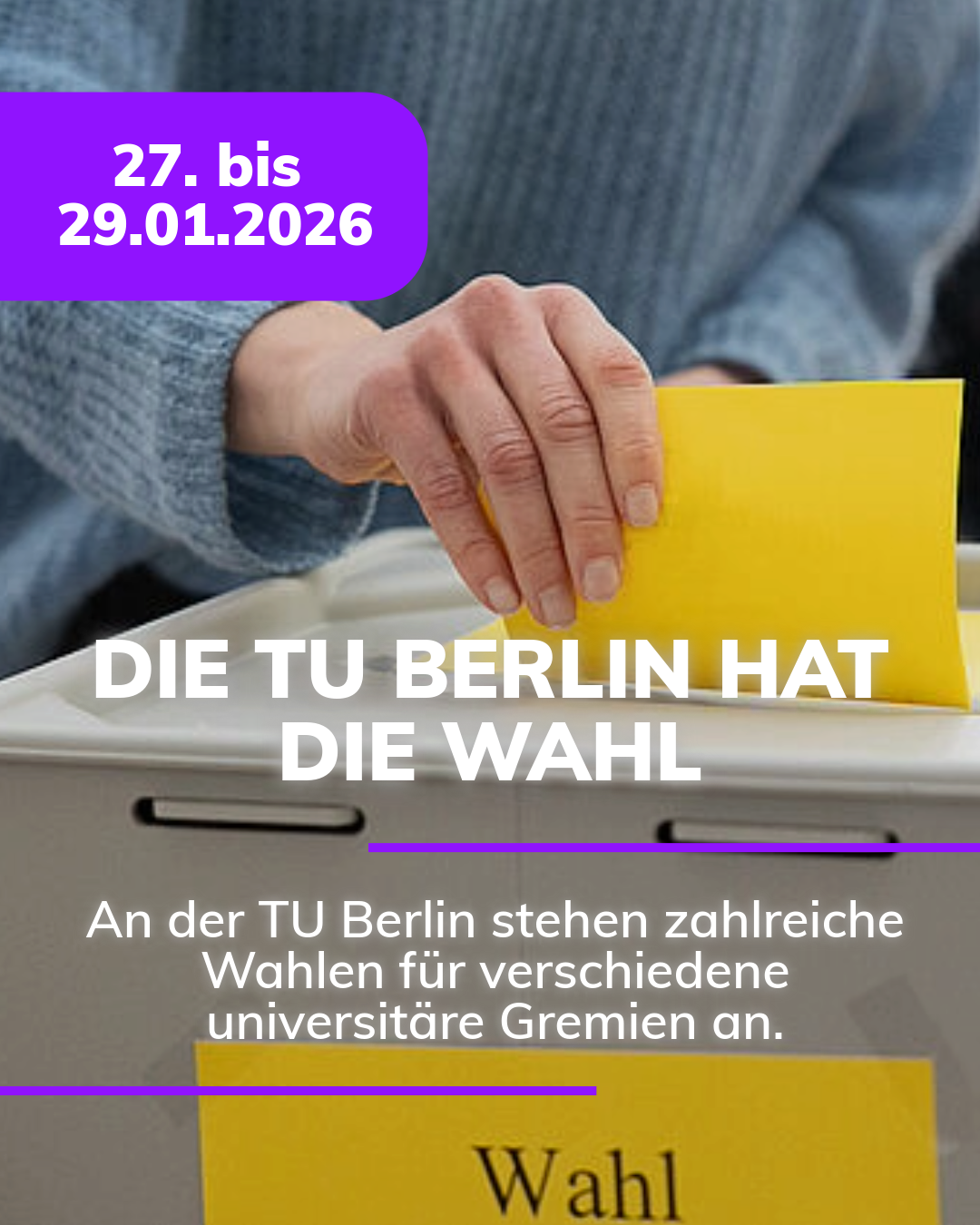 🗳️ Die Mitglieder der #TUBerlin haben die Wahl: Nächste Woche stehen an der TU zahlreiche Wahlen für verschiedene universitäre Gremien an.