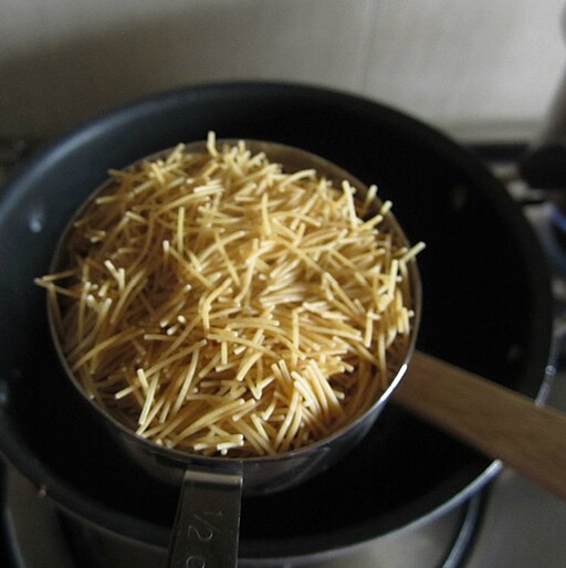 - Fadennudeln: Divya Kudua, CC BY 2.0 <https://creativecommons.org/licenses/by/2.0>, via Wikimedia Commons, https://commons.wikimedia.org/wiki/File:Semiya.jpg