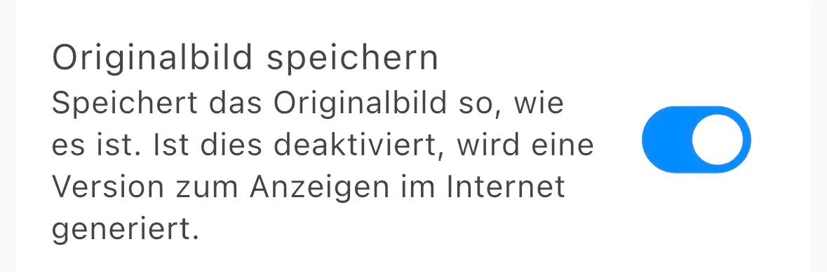 Hier „Originalbild speichern“ einschalten (siehe zweites Bild).