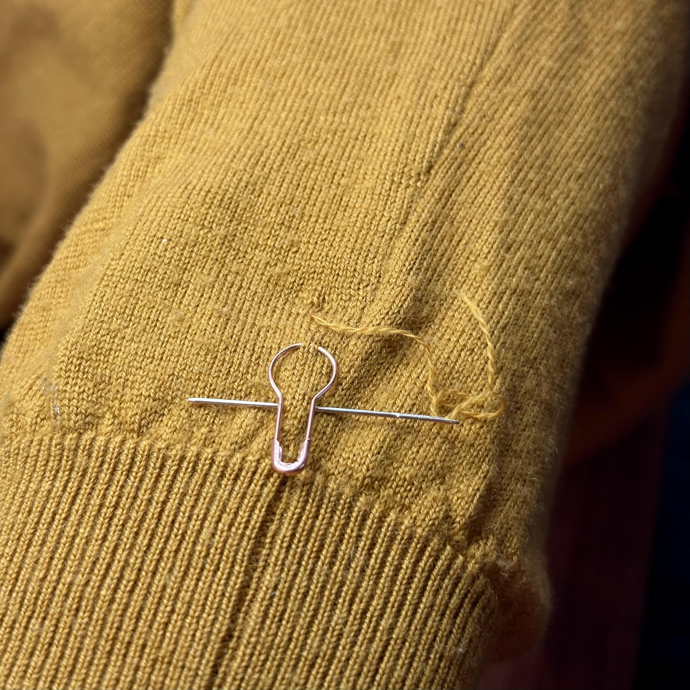 Ganz flott gemacht, hatte zum Glück noch farblich passendes Originalgarn im Reparatur-Archiv