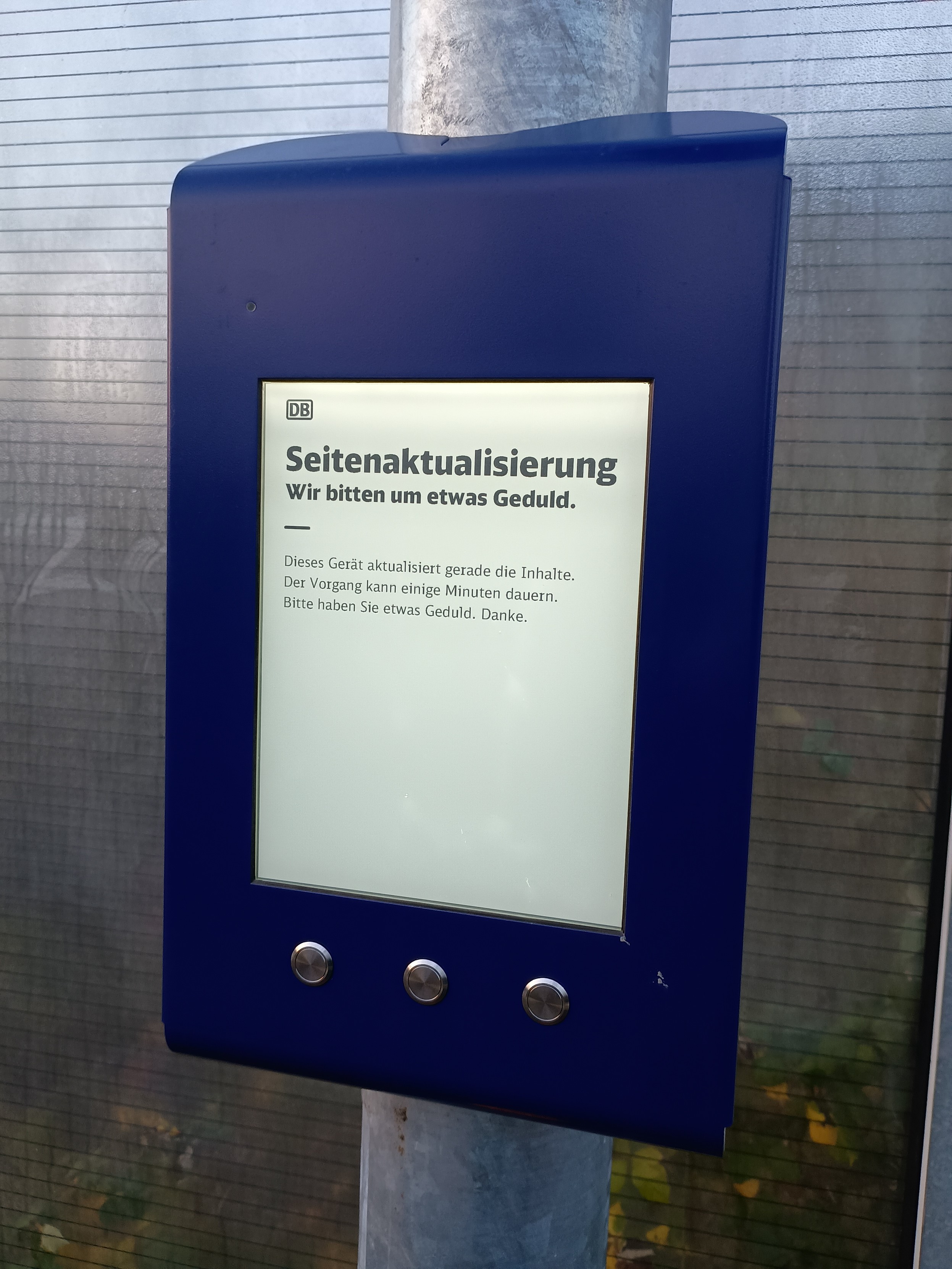 Und täglich hat nun der interessierte Pendler die Möglichkeit, über die Bedeutung der Zeiteinheit von "einigen Minuten" zu sinnieren.