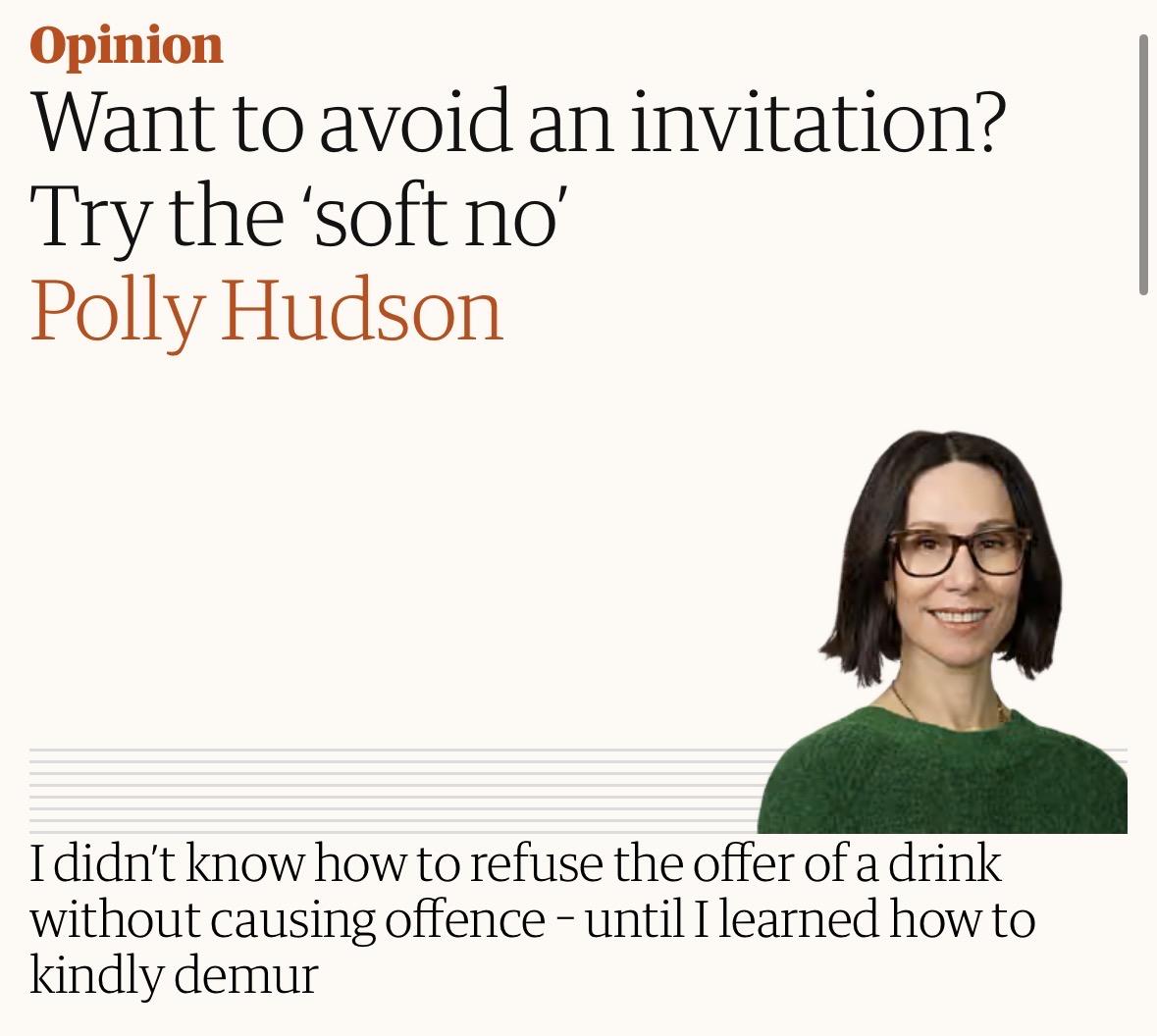 The polite way to refuse an invitation is to keep putting it off until you can write a newspaper column about not wanting to accept it, then the other person tends to get the hint.