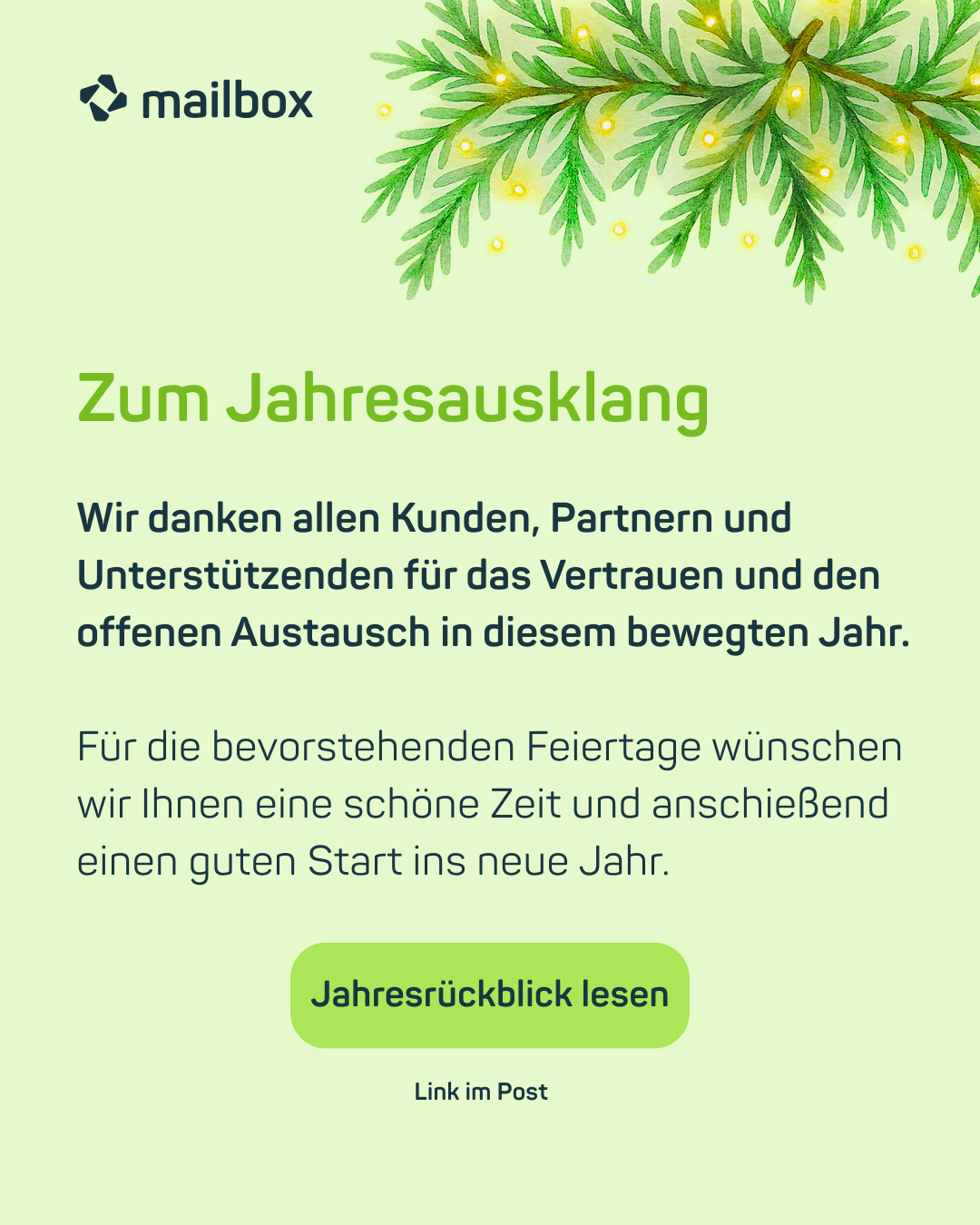 Wir danken für Ihr Vertrauen in diesem Jahr und wünschen Ihnen, Ihren Teams und Ihren Liebsten schöne bevorstehende Feiertage! -