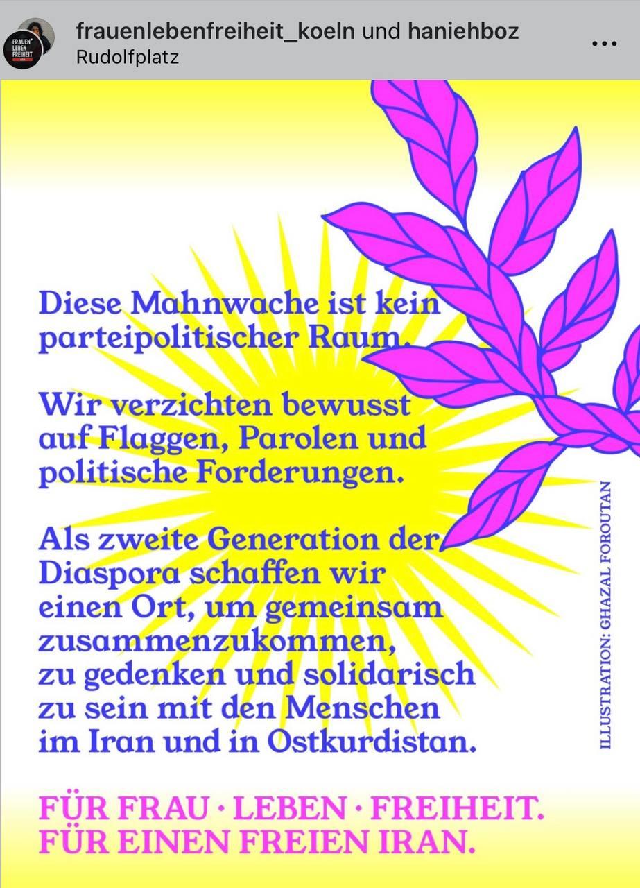 Als Kinder der iranischen Diaspora tragen wir Erinnerungen, Geschichten & Verluste in uns, die oft keinen öffentlichen Ort haben. Diese Mahnwache entsteht aus dem Bedürfnis, genau dafür Raum zu schaffen: für gemeinsames Innehalten, für Trauer, für Nähe & für Verbundenheit.