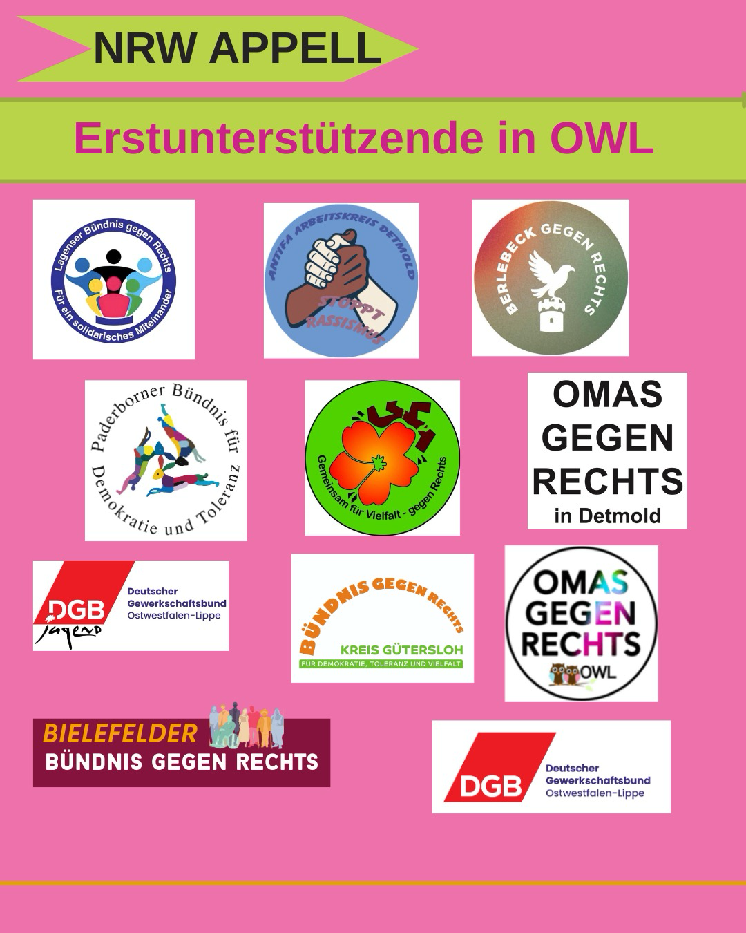Rund 90 Gruppen aus ganz NRW haben beschlossen, die Kampagne zu unterstützen.Täglich werden es mehr.