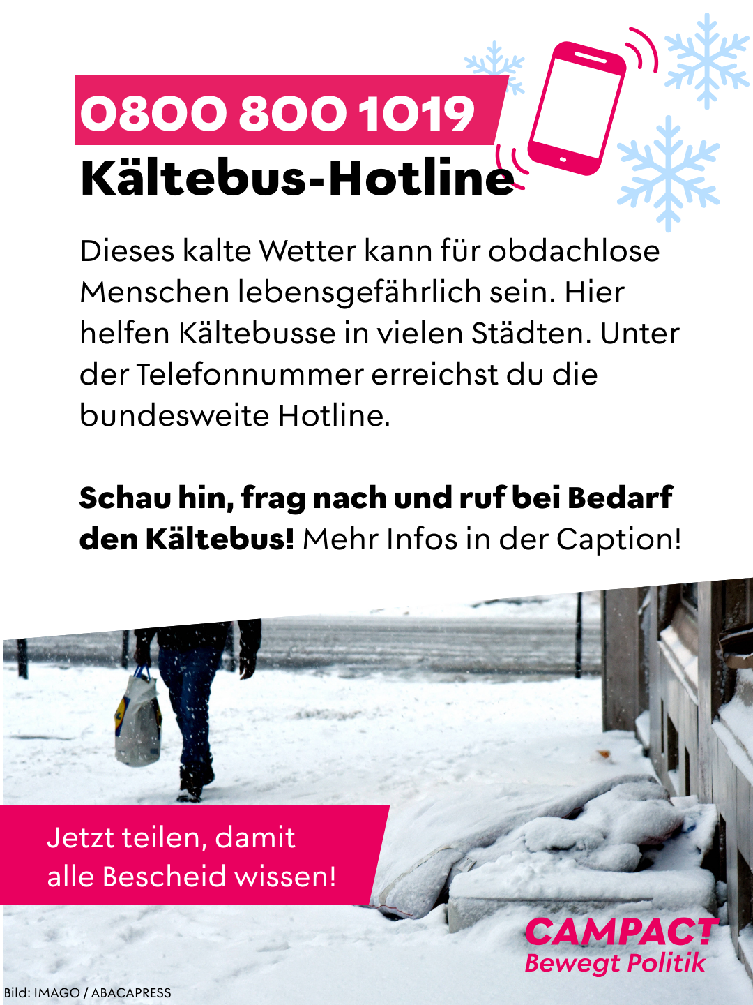 @campact Und die obdachlosen Menschen immer ansprechen, ob sie sowas wollen. Manche wollen partout bleiben, wo sie sind. Das sind erwachsene Menschen. Einen hab ich angesprochen, und er meinte, er müsse erstmal Geld verdienen (aka betteln), aber ob ich ihm nen Kaffee aus der Bäckerei besorgen könnte .. (klar).