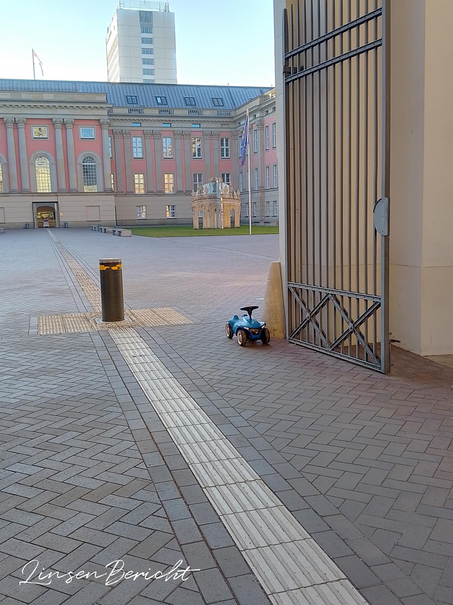 Eine Krähe steckt den Schnabel in eine fast leere Miniflasche Jägermeister und hüpft nun, den Kopf im Nacken, damit über den Gehweg. Vermutlich gab es zu Hause nüscht mehr.