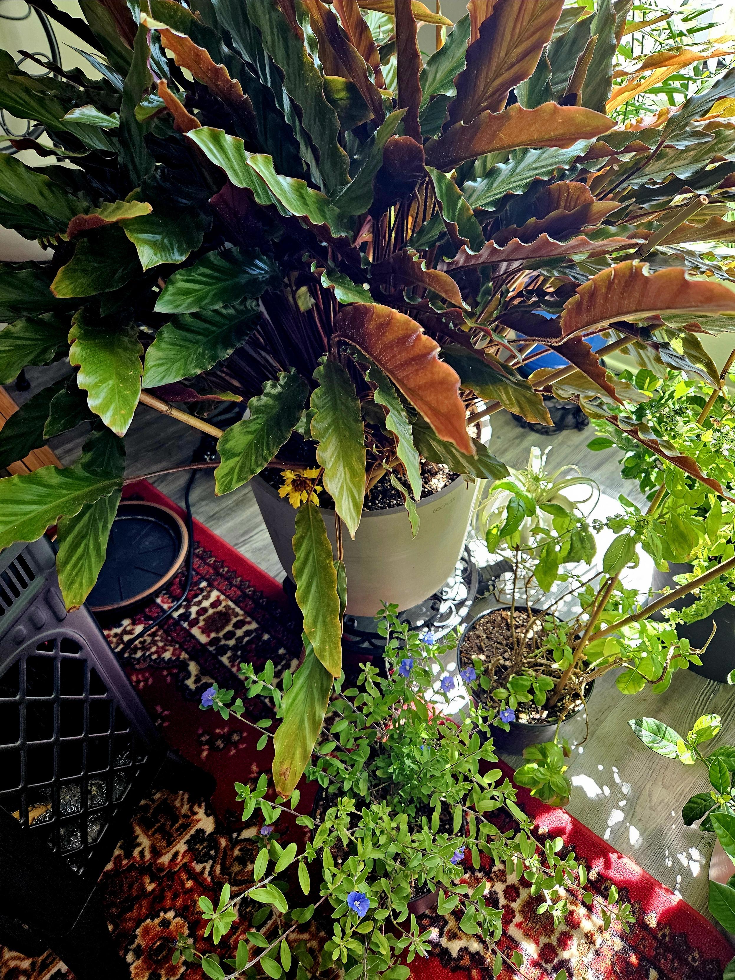 I had a nice surprise this week when I spied this yellow flower at the base of my Calathea Rufibarba.
