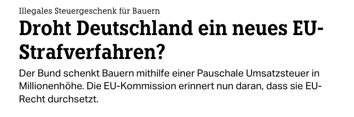 Die Bundesregierung hält eine Steuerpauschale für Landwirte künstlich zu hoch und ignoriert damit EU-Recht.